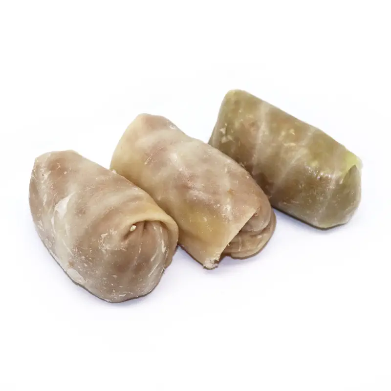 Капуста белокочанная свежая, фарш куриный, говядина, вода питьевая, лук репчатый свежий, крупа рисовая, жир говяжий, мука соевая текстурированная, соль поваренная пищевая, перец черный молотый.