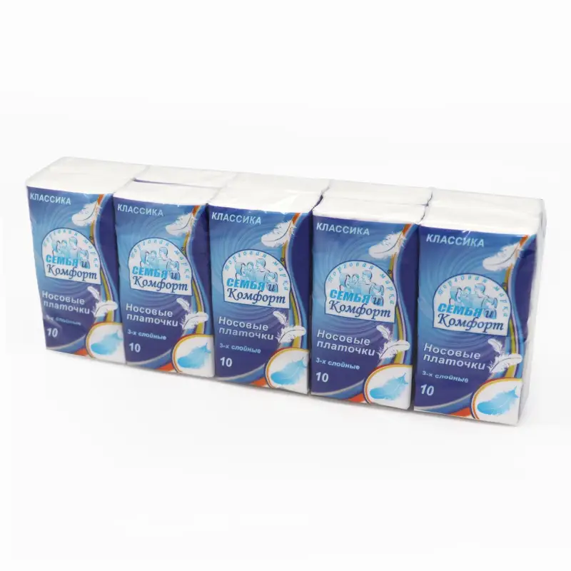 Платочки бумажные белые 3х слойные (в упак 10 шт) /СЕМЬЯ И КОМФОРТ ТМ/