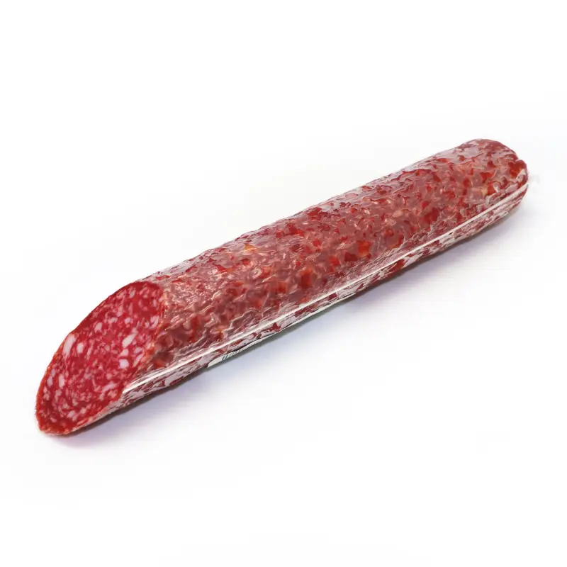 Мясо куриное, шпик, соль нитритная (соль пищевая, фиксатор окраски-нитрит натрия), соль пищевая, гидролизат растительного белка, говяжий белок, горчица, картофельная клетчатка, антиокислитель -Е301, молочный белок, животный белок, консервант, усилитель вкуса и аромата- Е621, ароматизаторы: аромат дыма, черный перец, кориандр, лавровый лист, тмин, регулятор кислотности Е450(i), Е451(i), краситель-кармины, стартовые культуры.