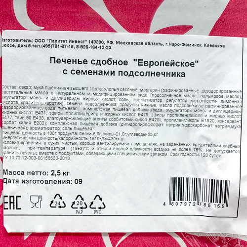 Европейское с семенами подсолнечника печенье сдобное вес/КОРОЛЬ СЛАДОСТЕЙ КФ/