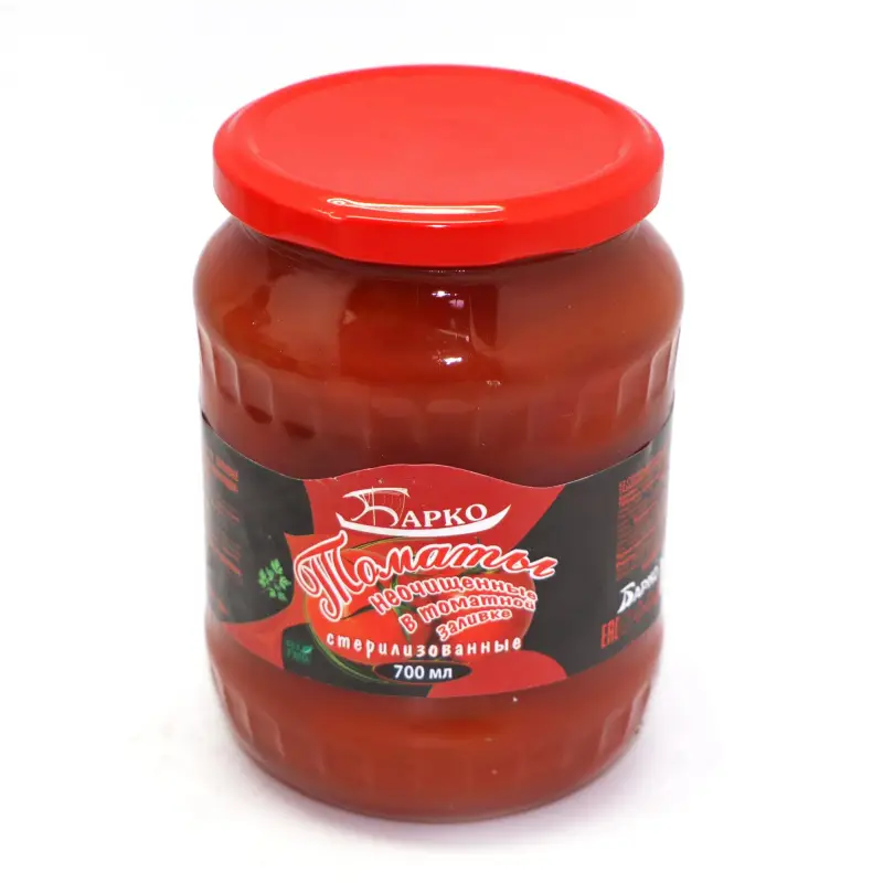 Томаты неочищенные в томатном соусе ГОСТ стекл/банка 700 гр /БАРКО ТМ/